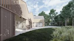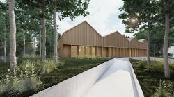 The combination of traditional forms, at first glance, gives the idea of complexity. The multi-pleated buildings with a double-heed roof, are melted into a single monolith. Thanks to lightweight walls, with mobile partitions inhabitants are allowed to modify the space of the building, depending on the weather conditions and their needs. Bright, unified wooden elevation soothes the sharp edges of the building and matches the haven with the surrounding nature.