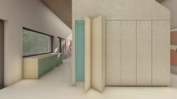 The interiors of the SupHouse are full of space and light. The essence of the arrangement was to remove unnecessary barriers. The centre of the house is open space living room and kitchen, with a storage Multi-box wooden construction in the middle (with all the technical installations and machinery hidden inside). Walking through the rooms, although they are not clearly separated, it is easy to assign functionality to them. Nick’s room is a unique space - adjusted to everyday physiotherapy sessions with equipment for rehabilitation. Its walls are made of glass - unlike at hospitals and that was our aim to differentiate it from that look. There’s also the drum kit because Nick learns to play the rhythm, which makes him happy and full of energy. The boy struggles with movement problems and amblyopia, that is why we gave up all the doorsteps and other barriers, we also added extra elements to stimulate his sensory experience.