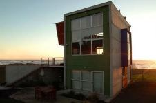 On a beach near an abandoned mine on Chile’s former “coal coast,” the Mauleen House merges historical industrial connections with the raw beauty and energy of the location. Concrete winch towers of the Schwager coal mine dominate the neighborhood’s horizon and influence details of the house design.