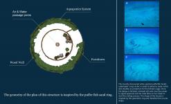 The shape and geometry of the house plan is inspired by the sand rings of pufferfish. They build underwater 'crop circles' in order to attract a mate, which also doubles as protection for the female's eggs. Once the design is finished, a female will swim into the center to signal approval and the male bites on her cheek to start the mating process. The shape of the houses is inspired by this geometric ring and therefore the circular shape. (Dailymail)