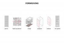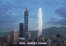 The map of Taipei is divided into six parts, which are juxtaposed and comprise collaged scheme. Then, at their intersection points, four non-generic programs are embedded in created outlines. As a result, a rigid hierarchy of a conventional tower is reconfigured into the non-generic building.