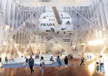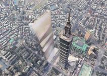 The 11500 sq.m. site is located right in front of the iconic Taipei 101 building. First, the site's contour is pushed. Then, the public space at the entrance is created. The form is shaped by the surrounding context: the side oriented to the city is emphasized by four stretched points, addressing rectangular cityscape, while the south elevation facing suburbs complements the mountains and picturesque scenery. The iconic structure's silhouette is surreally reflected on the south elevation. Lateral sides are media screens, announcing events, news, and interacting with the city.
