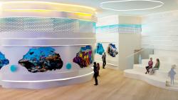The space helps in spreading awareness and educating people about marine life and marine creatures. While using sustainable materials, and interactive ways.