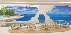 Its main design concept is merging the interior space with the surrounding nature elements “Mountains, Sea, Sky, and Greenery”. The main source of inspiration are the contour lines of the mountains. The color scheme used is beige color of the mountains and sand, and shades of blue of the sea and sky. The materials will be sustainable, clean, and some will be recycled materials.