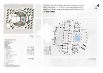 • The external plaza visually and physically connects the main entrance with the commercial area, the pond, the kindergarten, and the residential community.