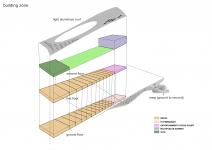 The building is imagined to perform like an umbrella. The parasol-like roof provides shade and protects the structure from direct radiation. The porous roof enhances airflow and creates a semi-open space at the roof level allowing various informal activities to happen in shade. The extension of the roof form at the northern side creates shaded walkways throughout the year allowing people to shop in comfort.