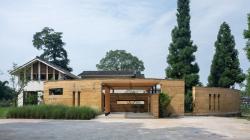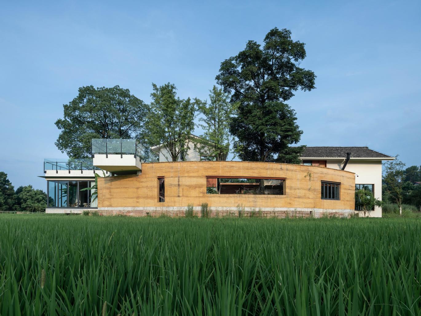 Rammed earth wall is a common construction method of traditional dwellings in Southwest China. It has simple appearance and strong climate adaptability. However, due to the defects of traditional technology, its structural strength and moisture resistance are poor. The modern rammed earth technology is adopted in the design to realize the rustic shape of the external wall. During the construction process, the material ratio is adjusted repeatedly to achieve the desired color and texture. The construction of large-scale openings on rammed earth walls is also a big challenge. Innovative rammed earth construction technology is adopted to achieve the expected results.
