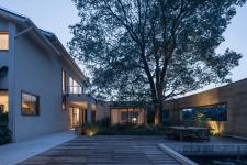 Turn left and push the door, the vision opens slowly. In the middle of the courtyard is a waterscape, and the tree growing alone in the pool. This picture shows the tension of collision between loneliness and vitality. The wooden veranda becomes a transitional space between architecture and courtyard. Light, wind, and scenery extend into the building without hindrance through pillars and gratings.