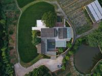 The project is located on a horseshoe cliff in the suburb of Chongqing, with lush trees and wide vision. It is a typical pastoral landscape in Southwest China. There are various kinds of folk houses built of stone, brick or rammed earth around the site. The buildings are distributed in groups or stand alone, and retain the construction features of different periods of rural development and the trace of old and new replacement. Each residence has its own yard or roof terrace as a living space and crop drying place. The proprietor yearns for the simple rural life and hopes to build their own farmhouses on this land. Paddy fields, fish ponds, orchards and pepper fields are cultivated around the house. This is a real farmhouse that grows on the ground. Designers began to think: how will architecture integrate into such architectural texture and landscape order?