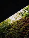 The bathroom space in this place is not separated from the open space and is located in a two-way connection between outside and inside. In this place, the bathroom space is defined with green tiles in front of a small green yard with a brick wall. This space does not have a glass to separate the inside and outside. Air circulation occurs naturally in this space.