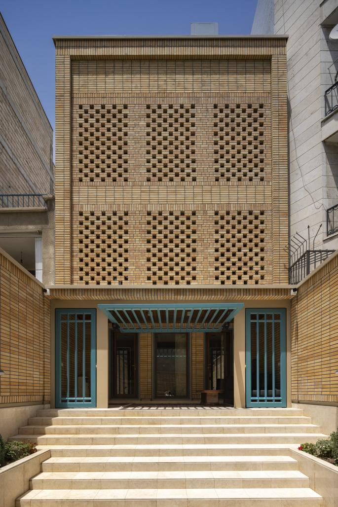 and to solve it, Fakhromadin brickwork was used in front of the terraces of the floors to control both the light from the south and the view of the neighbors and the space of the terraces according to the functions behind it, i.e. the kitchen and rooms for the family. can be used The eyvan of the yard was placed deep so that the presence of the family would be possible in it, away from the eyes of the neighbors, so that the family could spend more time in it during the day. The walls of the yard were reconstructed and executed higher to control the view of the neighbors. Another point that was taken into consideration in the design was that each space should include an opening with its design, and for example, the diversity of the northern openings indicates the difference in the spaces associated with them. The openings of the first floor are related to the hall section of the residential unit and the openings of the second floor are related to the janitor›s section.