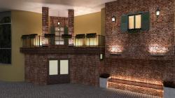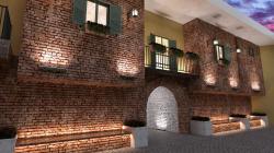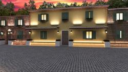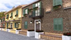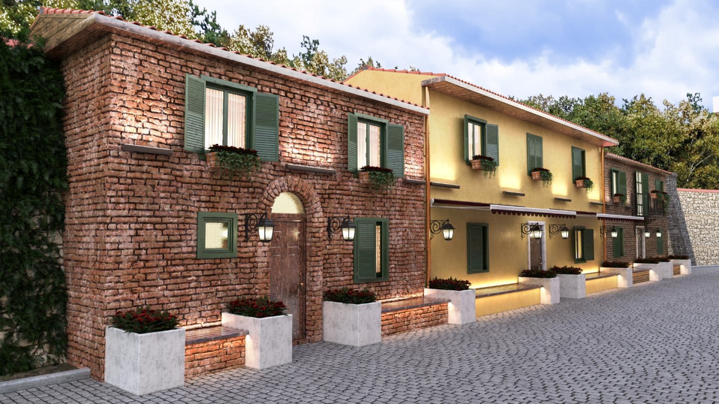 Dream House Tuscan Film Set located in Beykoz, Istanbul. Dream House villas are already a film set. They used to use a load bearing wall with stone covered behind the villas. The theme was Tuscany and backyard of villas designed as a Tuscan street. The load bearing wall extured and made by brick. One façade was painted yellow for the Tuscan home view. Extra light has been added to the inside so that pedestrians feel as if there is life inside the windows.