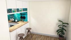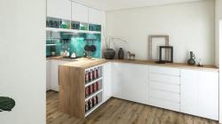The nice piano owned by the host was placed next to the living room door. Since it was not desired to have a TV, a large bookcase was designed in the living room.
