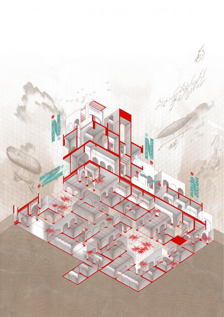 This has been investigated through the proportions of human and carried researches about Persian carpet typology and facts. The common/public areas are considered shared to increase the chance of socializing and re-chaining to the ancestors of these accommodations, known as "Carvansera". So it is not only about shelter but also to interact with people and their goals who pass by or gather there. There are some certain uses to this place as well; like astrology site and aero related hobbies, so people can add them up to their relaxation time while being there.