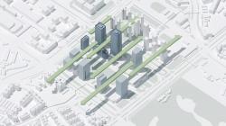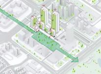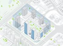 With balanced spacing between the high-rises and surrounding development, the design seeks to avoid direct building-to-building view and generate unobstructed 270-degree mountain views. To avoid visually-oppressive impact to the park, high-rise buildings below 100m are placed close to the park while the other two iconic towers are located along the main highway rather than the park-adjacent. The podium will be a commercial strip where multiple nodes are created inside the plot through a staggered layout. This is complemented by a city square formed at the corner of the development. With low-rises on the outer ring and high-rises at the nucleus of Baiyun New Town, a sinuous skyline is created, emulating and echoing the mountain ridgeline.