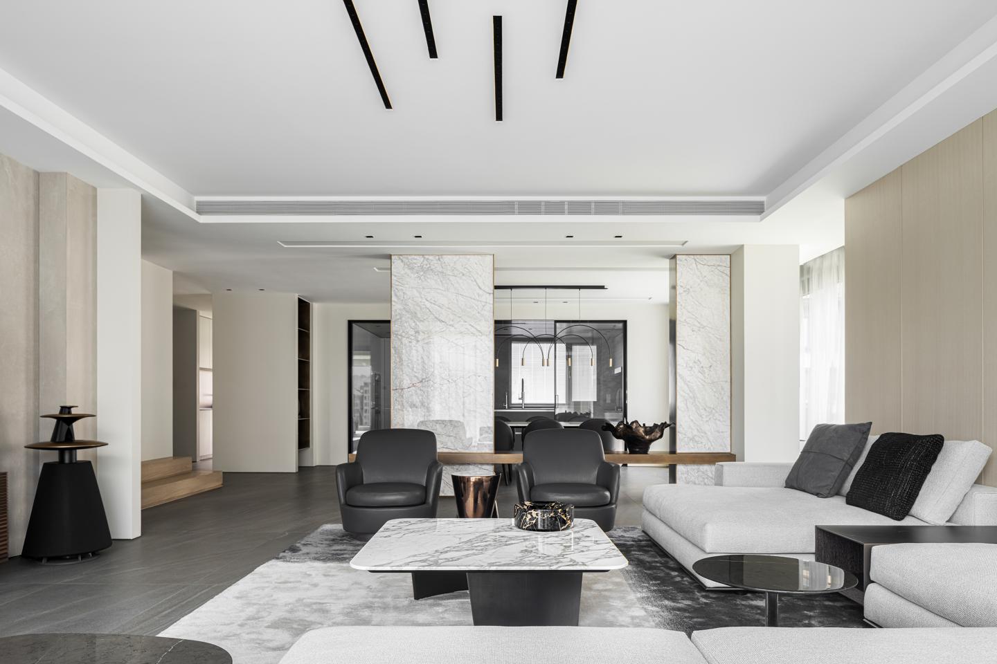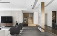 A three-storey penthouse in Qujiang, Xi’an, from the entrance to the attic, this 422 sqm residence expresses a pure and elegant home. Returning to the basics, designers use a minimalist and modern design style to embrace the true life.