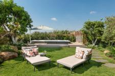 The outdoor environment does not fall away from the apartment itself and as mentioned the family members spend a large part of their time there: "For the children we planned a dedicated play area equipped with a climbing wall, a trampoline and garden toys. We integrated a jacuzzi with currents and a shower next to it, where you can wash off just before entering the water. The family and their guests have a great time Also from a large dining table, a TV screen and a well-equipped and luxurious outdoor kitchen that includes, among other things, an island and a grill, a refrigerator, an ice machine and more."