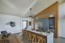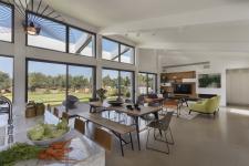 The entrance to the house opens into a large space divided into three distinct areas including the living room, the dining area, and the kitchen, all overlooking an endless view of olive trees.