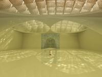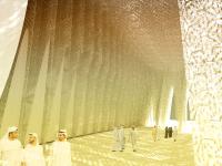 The intersection of the 7 m deep, over 100 m spanning structural ribs and the series of marble Jalli spaces at every 2.5 m comes together as one single system to eliminate direct light and heat to penetrate in to the internal spaces. Parts of the same system extends in to the semi open contemplation spaces and open courtyards creating cool and shaded pockets for people to gather in smaller groups even when they are not part of the prayer and the community gathering.