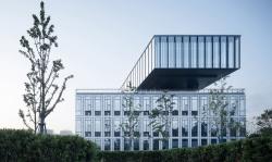 Serving as supporting office facilities, the project mainly houses municipal offices and maintenance rooms. The architects hoped to build a low-profile city landmark by creating a beautiful public space. The building is only an ornament to the park, like a delicate "box" beside the Beijing-Hangzhou Grand Canal. In order to achieve a flexible use of space, the whole building is arranged in an S-shape along the land’s long axis. It consists of four floors above the ground and one underground floor, with a construction area of 8,815.7 ㎡. The conference room on the fourth floor straddles the main building as a personalized structure, from which people can overlook Qiantang River. The conference room acts as the core space of the whole building.