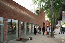 The concept of the re-development is to convert these separated buildings into an integrated art exhibition space while keeping the industrial appearance as much as possible. A 50-meter-long brick wall was introduced to the street interface in order to join the 3 old individual buildings into one single continuing façade. The new façade, however, is not completely replacing the old façades, rather, interacting with the old one by its shape and tectonic concepts.