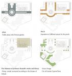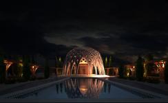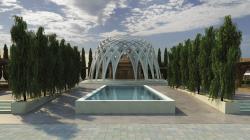 To the center of the park there is a memorial element designed which its design idea comes from the theoretical physics, algebra and ancient Iranian architectural principles. Also a tomb had already been designed that was of a great worth for professor Hessaby’s fans and family, so it was maintained. To the north of the site a cultural center is designed which its basement is dedicated to a library and the first floor is a museum of professor Hessaby’s works. The overall idea of this building is the central yard architectural pattern. At the west of the cultural complex the wood roofing is designed to be built with wooden knots to make us remember the old architecture of the region.