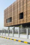 The graphical perforations ensure a dynamic live play of light and shadow inside during daytime & highlight the building against the dull background of dessert.