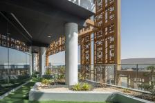 Copper, as per ancient Ayurveda philosophy represents prosperity, good health and high standard of lifestyle. The façade of the building is inspired by this copper color.
