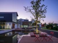 Sustainable site planning and construction methods: Landscaped areas are enlarged to reduce heat island effect, driven by gentle prevailing winds the waterways and canals designed to promote passive evaporative cooling during summer periods, stone pavers reclaimed and reused from old water town villages, sculptural swales created for onsite ponding and canal-capture drainage systems during the rainy season.