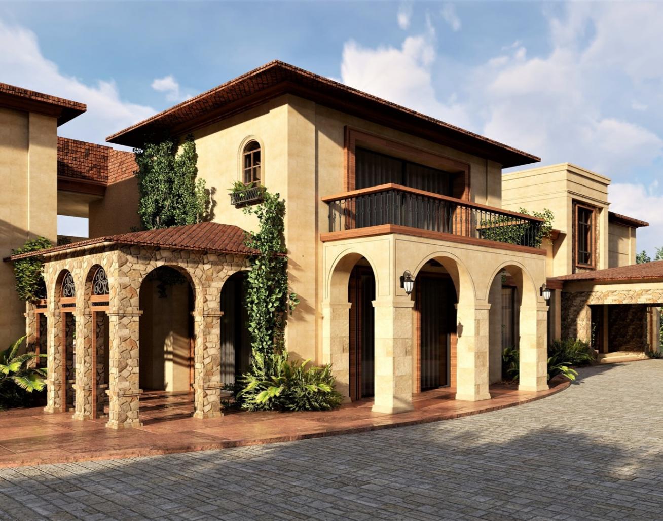 The whole theme of the building is based around the Spanish Hacienda Style which elevates and distinguishes the experience of living in the city. The architecture used in the elevation design creates a different mood and tone of the experience the building has to offer.
