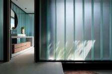 The entrance follows the natural slope of the property while maintain privacy for the client. You can see a wide-open style living room connected to a guest bathroom on the first floor. The U-Shaped glass allows plenty of light into the bathroom while maintaining privacy for the occupants. There is a three-hundred-sixty-degree view from within the residence. You get to truly enjoy the idea of a home within a “forest”. A large number of non-reflective decorative materials allow light and shadow to stay in the space without causing random scattering artificial light sources. There is a 360-degree view from within the residence. You get to truly enjoy the idea of a home within a forest.Local species were used to create a layer of greenery, taking into account the adaptability of climate and ecological environment. Reducing the need for excess carbon emissions.