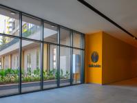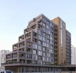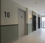 There are 1 1 and 2 1 flats from the 1st to the 10th floors, and 2 duplexes on the 11th floor, 98 flats in total. All apartments have been designed with the aim of maximum use in minimum space. A mini GYM area and the co-work area is reached by an elegant staircase leading to the sunken garden on the lower ground floor between the shops. Separate accesses from the reception for guests and by the core for residents is provided.The house keeping service located on the basement floor, special services not only for co-work and GYM but also for all floors. A solution was provided for temporary accommodation with 2 detached guest houses with Sunken Garden view. Natural ventilation and day light is provided both upper and lower ground floors.