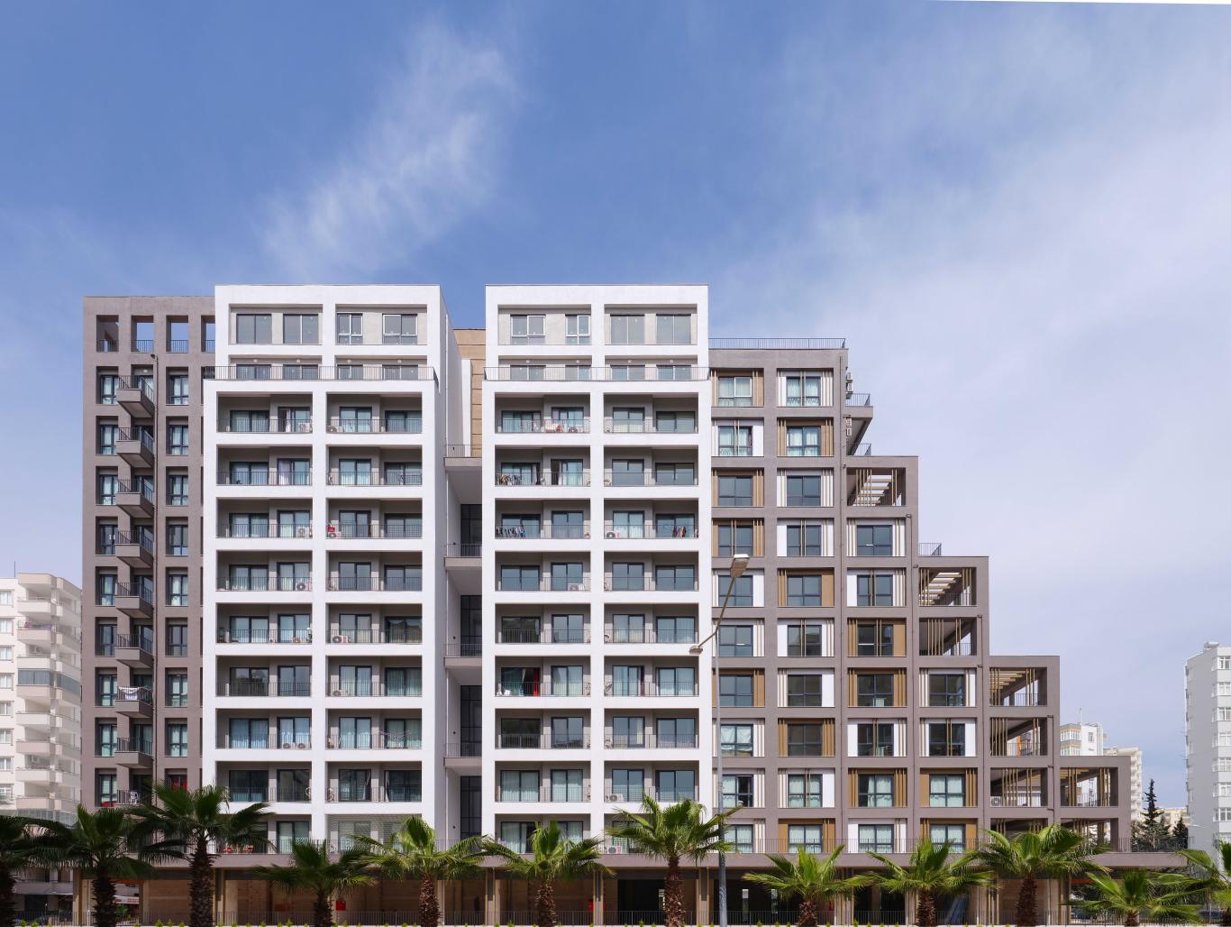 Located on Turgut Ozal Boulevard, one of the main arteries in Adana, only one street away from The Natural Park area, G4 NEST project designed as a part of the city where living & working spaces intertwine and common spaces provided. The interaction between nature and residents has been increased with the floor terraces, urban terrace, and roof garden. On the ground floor, the street shops surround the base with terrace areas especially reserved for each. The residence entrance separated from these commercial units by a wide&inviting eave. Retro style motifs, pastel tones inside create feeling of 'home', which coincides with the name of the complex. The floor terraces and halls located on the axis of the elevator hall with the city view and natural light. The urban terrace, designed on the 1st floor, provides an opportunity to take short walks and get together with the landscape area. A common terrace with a bird's-eye view of the city designed on the roof. Vegetables can be grown in the mini orchard, barbecue and tea parties can be met. The city terraces, specially designed for the flats on the facade of the natural park area, add characteristic feature to the building facade with their gradual retreat. On the lower ground floor working space and library are perceived from the completely transparent bordered garden façade, natural light taken in from the skylight. With all these features, G4 NEST is designed for those who love to live a minimalist, sensitive and free life.