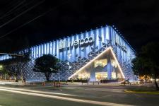 The facade converges at a vertex that forms the union of two avenues, it is formed by a grid of triangular modules with flat pieces and in low relief, forming a subtracted pyramid, which when rotated allows multiple variables, and when combined it manages to transmit the sensation of movement. The texture rotates along the walls of the façade, which points and accentuates the main access to the store. In addition to the set of reliefs, the same geometry has been transferred to the openings through windows that frame the exterior urban context and allow natural lighting inside.