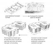 The two courtyards in both the wings act as interactive and activity spaces for students. The central cavity between both the wings and in front of the admin area not only welcomes the students and visitors but also acts as an amphitheater and assembly space for students.