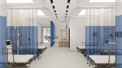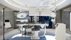 The project is located in the city of Eldoret in Kenya, which has the largest economy in East Africa. The clean corridor in front of the Operating Theaters was designed according to the operating room doors. The movement made in blue in the form of a frame surrounding the corridor at the door of the operating room created a rhythm in the clean corridor. There are basically 3 types of spaces in the hospital, 1-main circulation corridors (they were open public spaces for all people), 2-semi-open spaces (semi-open spaces that open towards the corridor such as pharmacy, reception, waiting areas, nurse station, they are not completely closed spaces). ), 3-indoor spaces (they are independent spaces separated from other spaces by a door such as patient room, operating room, consultation room). All of these different places come together to serve a single purpose: to restore the comfort of their previous life to people who have lost their health. If these different spaces can be related to each other, if they can all speak the same design language in different ways, a successful hospital design will be achieved. In order to achieve this aim in the project, we tried to define a design language that was reproduced according to its own context created by the hospital plans, instead of taking the previous ready-made designs and copying them here. Nurse stations, which are semi-open spaces on all floors of the hospital, were designed to extend into the corridor on the ceiling, emphasizing their function. PACU, ICU and HDU areas have been designed with stretch lighting on their ceilings, and each patient bed has been accentuated with lighting in the ceiling design. Hygienic and easy-to-clean med glass is used on the operating room and Cath lab wall.