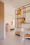 In terms of materials: the bench and the dressing room are made of neolith, as is the worktop in the main bathroom. The floor is continuous micro-cement paving, and the natural wood panelling has been preserved and restored. The idea is to give the house a facelift, but without forgetting the original elements that are so unique.