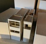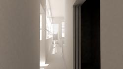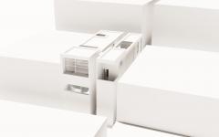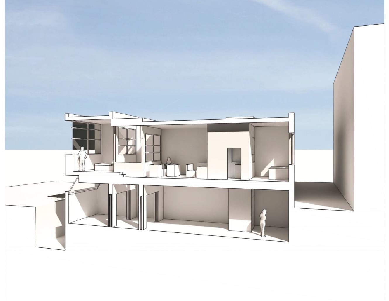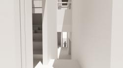 The intention behind the design is to build a studio/gallery that also doubles as a dwelling for an artist whose work consists primarily of medium- to large-format paintings. The site is located in Amman, Jordan and lies on a slope extending from zero to four meters in elevation. The site is oriented towards the north and south along the short side. In addition, on the west, there is a pre-existing building, and on the east lies two flights of stairs. The design of the gallery is two bar-like configurations that divide the interior and exterior spaces with a main axis dividing the bars to create an entry along the main axis from the two different stair landings on the original site to the gallery. The gallery is designed to attain natural light and ventilation, by mainly using a skylight, an open courtyard, and several openings. Each space is designed to create a different experience by the use of single-level, tall, wide, compressed, and narrow spaces; in addition to views of the cityscape of Amman and control of natural light suitable for the paintings. The public entry is from the north and south through a staircase reflecting the original site's staircase. The interior spaces are organized linearly along the datum created by the axis. The ground floor level consists of the gallery and studio, which the artist can join the studio gallery during exhibitions and also the gallery space for painting. There is a central main courtyard that allows Maximum light and ventilation to the upper level and gallery; in addition, several light wells are provided to allow light to enter certain parts of the gallery. Moving to the second floor from the north entrance lies the private space. The organization is carried through the upper level following the two bar-like configurations, providing a transition zone that allows the artist and guests to look into the gallery in the courtyard as well as a slice of framed view of the cityscape of Jordan by the end of the transition zone until reaching the sleeping area one would see the full framed view.
