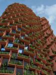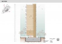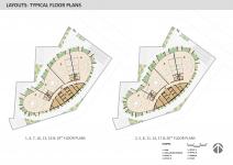 The building shape with its projecting decks allow integration of open spaces with enclosed ones. The form generated by the blend of building shape and balconies create a parametric envelope of repetitive cascading elements developing a unique identity.