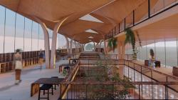 The focal point of TETRAGONO is the bus station, which is designed using locally sourced materials to reflect the cultural heritage of the area and create a sense of place. The bus station will serve as a transportation hub, providing convenient and efficient access to the surrounding area, while also acting as a catalyst for social and economic growth. In addition to its functional design, the bus station also includes a unique and innovative library building. The library is integrated into the station, with bookshelves forming the stairs and walls, creating a visually appealing and functional space for passengers to enjoy. To enhance the library experience, the ceiling structure has been designed in a detailed way to effectively cancel out any outside noise, creating a peaceful and conducive environment for reading and relaxation. This library building serves as a dynamic gathering space for the community. The integration of a library into the transportation hub is a prime example of the project's commitment to promoting social and cultural enrichment, as well as its focus on creating a well-rounded and comprehensive experience for all visitors to the area.