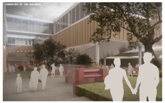 The permeability and interaction relationship with the area of the building is one of the main design problems of the project and has been carefully studied. The circulation between private and public spaces is designed with a core, service that serves only educational users. The public circulation design has been carefully designed for the congregation services included in the program. In the design of the building circulation, primary and secondary corridors are connected to the vertical circulation. While the primary corridors provide public services, controlled access to private spaces is provided thanks to various shortcuts and passages. The design language required on the facade for wind control and natural light access, which is maintained within the context of the geographical location of the building mass, integrates with landscape design. Glass steel joinery and wooden cladding are preferred on the facades, and steel construction components are recommended as a solution for wide openings in reinforced concrete structure.