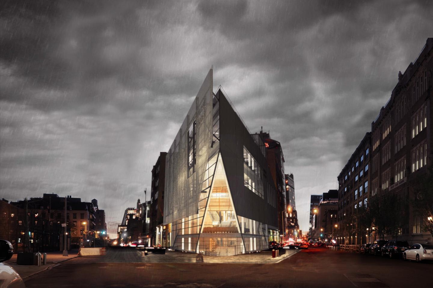 The site of the project is quite special — it is a triangular land at the junction of the three districts of Meatpacking, West Village and Chelsea. These three districts have gone through the Great Depression of World War II, the vigorous development of the post-industrial era, the hippie culture and economic decline in the 1970s to 1990s, and the urban renewal and new artistic community development in the 21st century. To the west of the site is the starting point of the southern end of the High Line Park, which is the Whitney Museum; the south of the site is a public park, which is a place for citizens to have outdoor activities, including two basketball courts; the north side is a high school, which requires a relatively quiet street environment. Next, various strategies will be applied for designing the building within the context to create a series of public spaces with local industrial and artistic atmosphere to fully accommodate the needs of citizens and office workers, and create an urban living room.