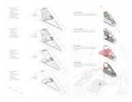 In terms of massing, in order to allow the building to better connect with the surrounding, the rear side of the site is elevated to completely open and connect north and south; and the volume of the rear side of the building is carved out, In this way, a triangular open posture is formed to signal citizens to visit the building; at the main entrance, the volume of an arc corner is sculptured to make the flow of people enter the building more smoothly; finally, at the front plaza, the volume is shaved off, and the entrance is sunken, so that a relatively open and intimate space is formed, also displaying what is happening on the second floor in the forum for people who travel westbound toward the site. In the treatment of the most important space—the public forum, starting from the entrance, the curved surfaces formed by the shallow stairs and the suspended ceiling together create a completely welcoming posture, and the space at the end of the forum is raised to a double-floor volume to enhance its publicity and importance. In terms of building floors, the public staircase at the entrance atrium is used most efficiently through the split-level approach, and the east and west sides of the building volume are staggeredly connected. The roof of the building forms two gardens, which are connected to the park across the street, and echoes with the High Line Park in the distance, creating an anchor of the city park. Through such a series of strategies, finally formed, starting from the bottom, the gradual change of increasing spatial privacy, and its functions in sequence are coffee shop, public forum, exhibition gallery, library, classroom, office and conference room.