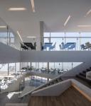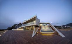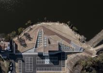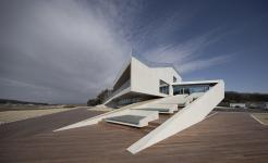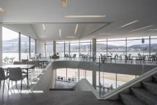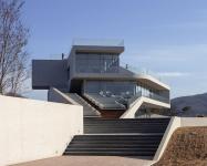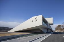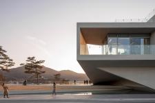 A garden and farmland, a pond and a reservoir, a long walkway and a levee are juxtaposed to create an access road, and a powder room is installed under the cantilever and on the water space to create mutual communion between indoor and outdoor spaces. A void extended to the top is created in the reception area on the first floor to secure a vertical sense of emptiness, and a horizontal waterfront plaza enables people to enjoy a panoramic view. Circulation is exposed in the voids on all floors to avoid cutting off spatial flow of indoor space. The second floor is designed as a platform that meets the outdoor stands in two directions and leads to the third floor. Concrete pyeongsangs were installed on the circulation between the 2nd and 3rd floors to accommodate various indoor performances and assemblies. The 3rd floor is linked with the rooftop for parties and views, and it can be used as a viewing platform of indoor and outdoor views and sunbath.
