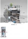 The intention is to design a prototype house for a residential complex aimed to accommodate young families. It is designed to symbolize the tree. Family is like a tree that grows and continues to spread its roots down the earth and its branches up in the air. It's the pure symbol of a family. It's obvious that this house is growing the same. The main stem of the tree which in this case is the stairs. The stairs are the core and the heart of the house. And the spaces are distributed on different levels, each space is located as per its privacy level. The entrance and the reception are in the lower level where the office is half a floor high from the entrance along with the living room. Both are located in between the lower public level -reception- and the higher private level -where the bedrooms are-. All with green roofs and terraces above covered with a degrading canopy to give the amazing experience of a treehouse. Placing the water underneath the office mass is to assure the life that is given to the tree and the continuity of the energy and blessings given by the tree in return.