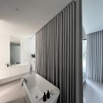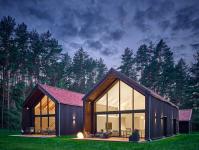 Urban solutions did not assume the creation of a new complex of buildings as a chaotic cluster of houses, shredding the space of the plot. Thus, a habitat was created for two families unrelated to each other but sympathetic, in which common spaces were naturally shaped between buildings in the form of an internal courtyard. We worked out a common view without distinguishing anyone. Each building has a different character of the interior but a coherent shape, materials and scale of buildings. The proportions of the objects were maintained and referred to the architecture of the region, typing in the pristine character of the landscape.
