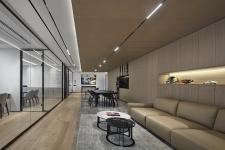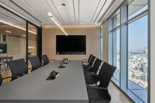 A spacious conference room and the son’s office were planned in parallel to the central space. The father has a corner office with an impressive panoramic urban view. “The ceiling in the father’s room is different to that in the other spaces: it is collapsible and fitted with lighting that emphasizes its length”, explains Zeldman. “We also created a seating corner in parallel to the glass windows that overlook the view. The team’s offices are located in the narrow section of the space, further down from the entrance, providing them with calm and quiet areas where they can work uninterrupted”, she summarizes.