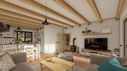 the house is designed as a wall-bearing structure made of sand-lime masonry. Based on a reinforced concrete slab and foundations and reinforced with a crown. The house is roofed with a wooden truss roof and anthracite ceramic roof tiles. The ceiling structure in the living room consists of recognized wooden beams. Thermal insulation consists of EPS gray polystyrene for the facade and floor. The ceiling is insulated with blown cellulose from recycled newsprint.