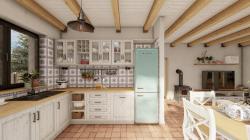 The house is heated using a water-air heat pump and a tiled stove. PV panels and battery storage are considered in the design. PV panels to heat water in the future. Ventilation is natural with the help of windows. The house uses energy-saving A appliances and LED lighting. Shielding is ensured by the overhang of the roof and external sliding shutters.