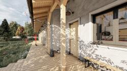 The form of the family house is made up of a single-storey mass of a rectangular floor plan with a gable roof of a floor-plan wagon, which seeks inspiration from the original folk architecture and enriches it with new elements. Its mass arrangement corresponds to the functional zoning inside the house.